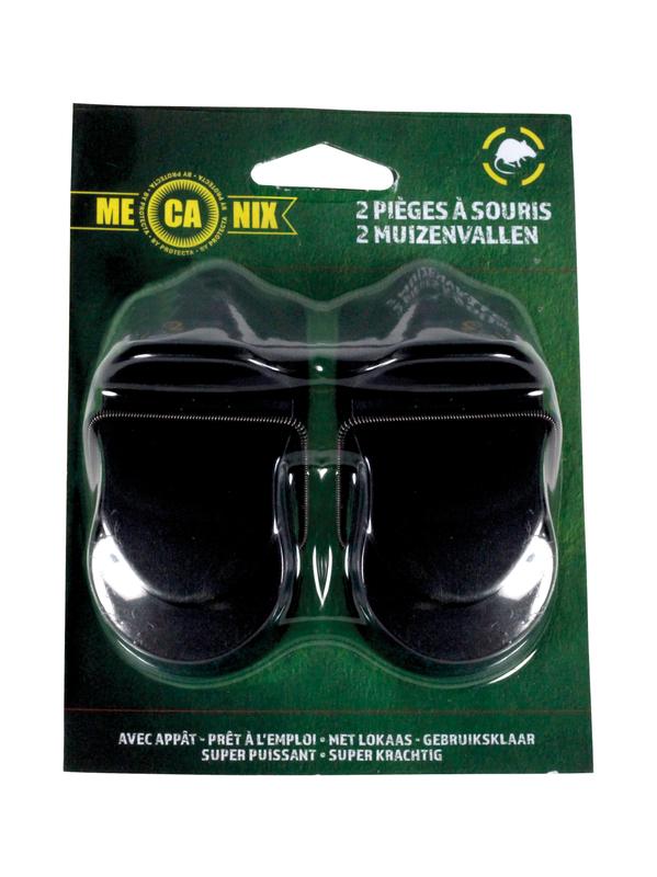 Superkrachtige mechanische muizenvallen in kunststof. De val spant automatisch op en is direct klaar voor gebruik dankzij het geïntegreerde lokaas (pindakaas).