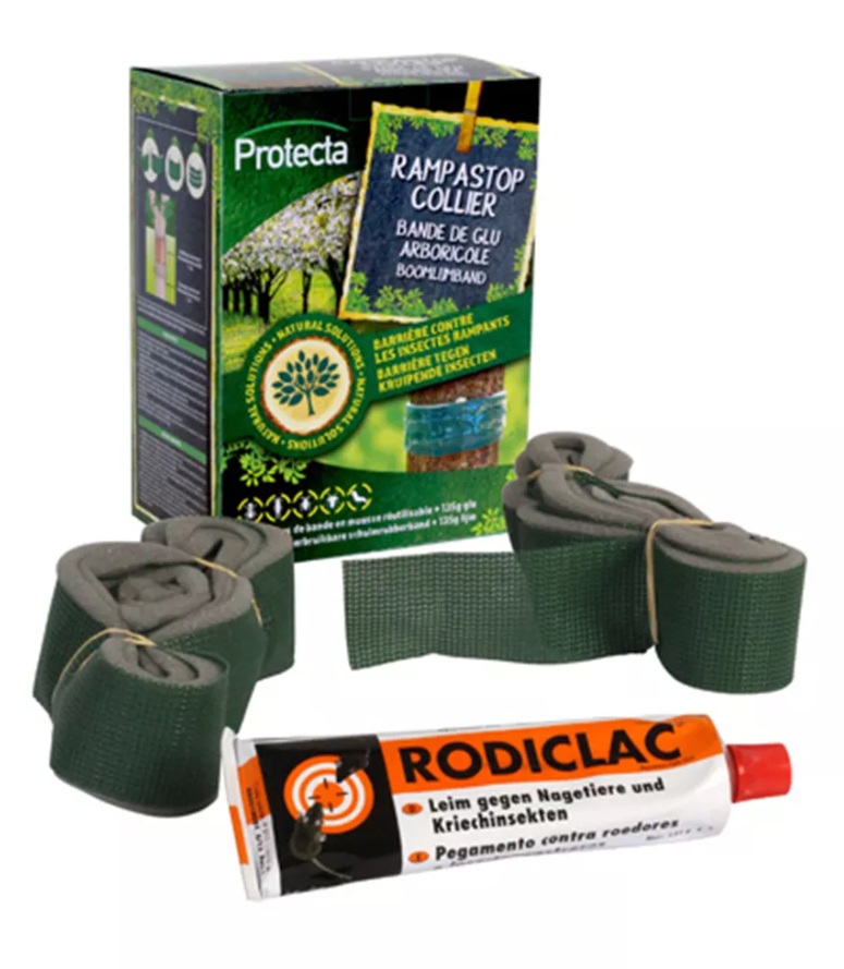 Deze boomlijmband vormt een bescherming tegen kruipende insecten op stammen en takken. Het voorkomt zo invasies van o.a. mieren, bladluizen, oorwormen en rupsen. Fysische barrière.