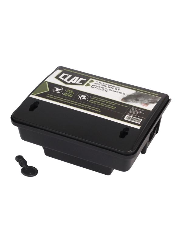 Station d'appatage concue pour attirer les rats et les souris. Il suffit d'y placer des pates, blocs ou granules. Une fermeture a cle permet une securite accrue.