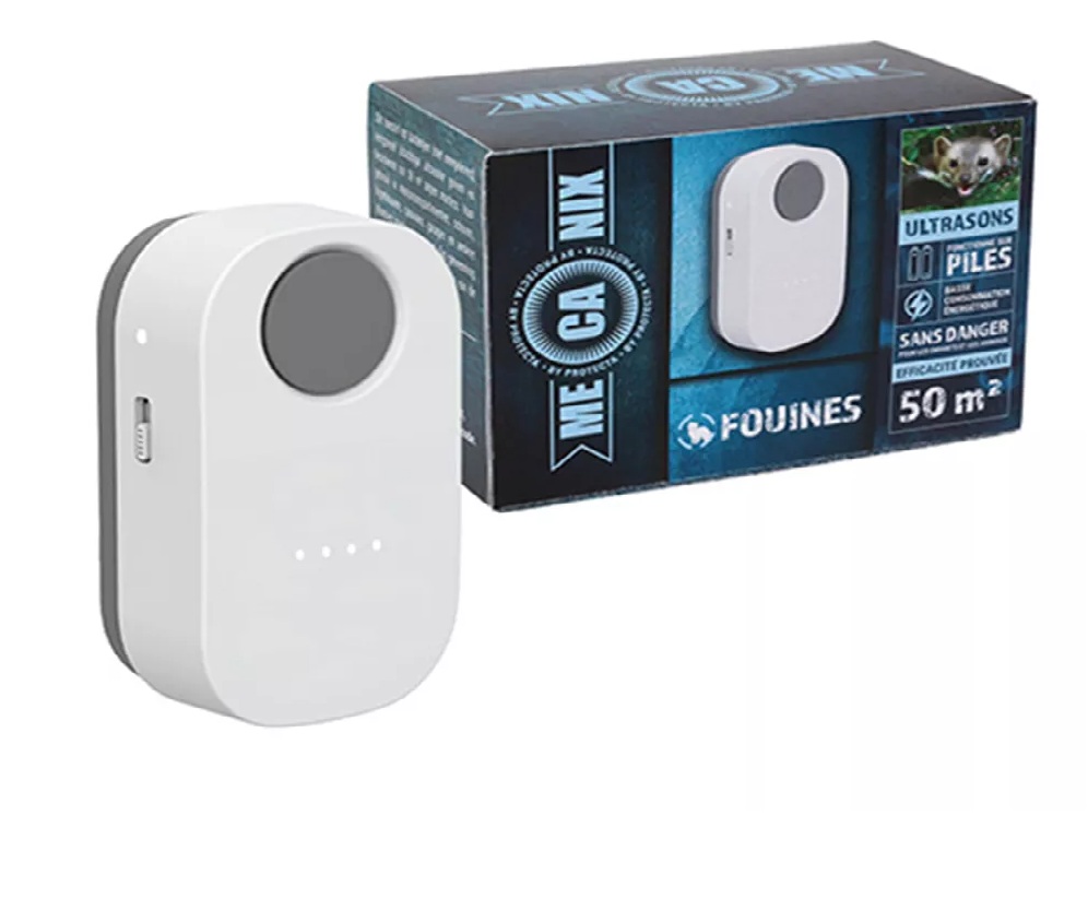 Dit apparaat zendt ultrasone geluidsgolven uit om marters te verstoren en te voorkomen dat ze in de te beschermen ruimte blijven.